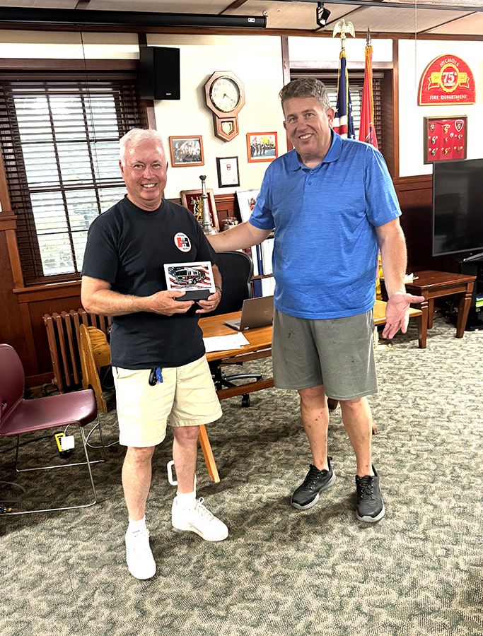 On July 1, 2025, father and son, William and Cory Bachlechner, were proudly sworn in as Senior Firefighters with the Nichols Fire Department by Fire Commissioner Mark Schroeder — a memorable moment for the Bachlechner family and the community.