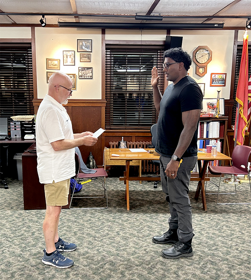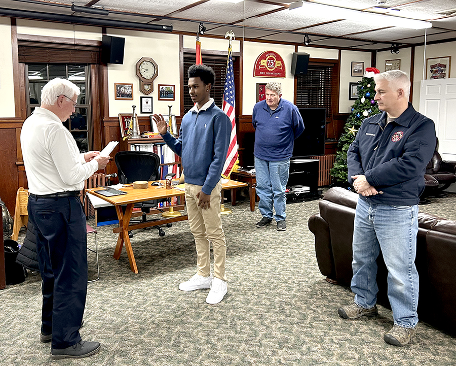 On January 7, 2025, Commissioner Patrick Freyer swears in 16 years old Junior Firefighter Daniel Vindas at the January 2025 Fire Department monthly meeting. In 2024, the Nichols Fire Department swore in eleven recruits for which we are very thankful.